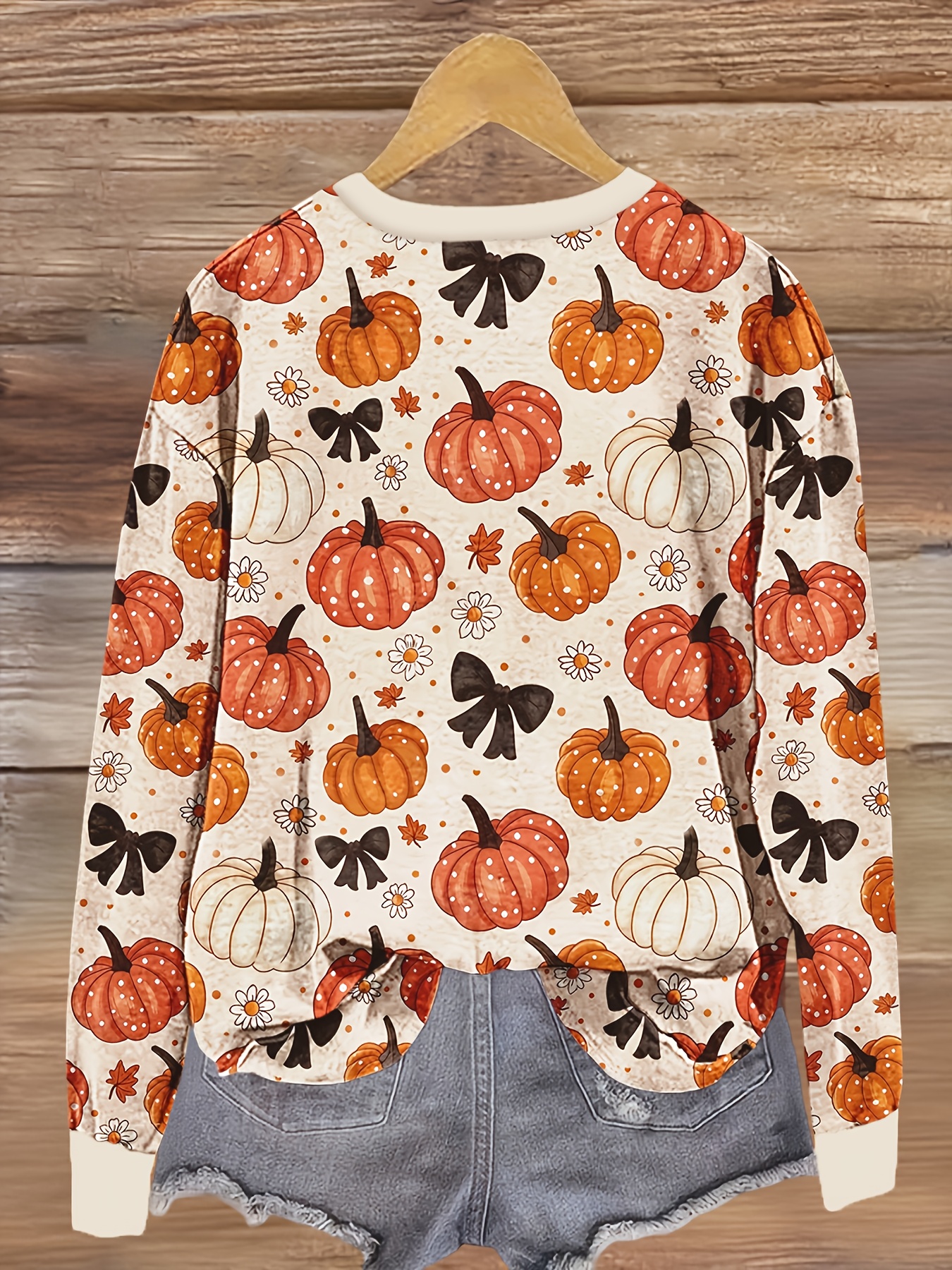 Plus Size, Plus Size Women's Halloween Pullover Sweatshirt - Oversized Casual Round Neck Long Sleeve with Pumpkin Floral Butterfly Print, Machine Washable Fall Autumn Holiday Party Top