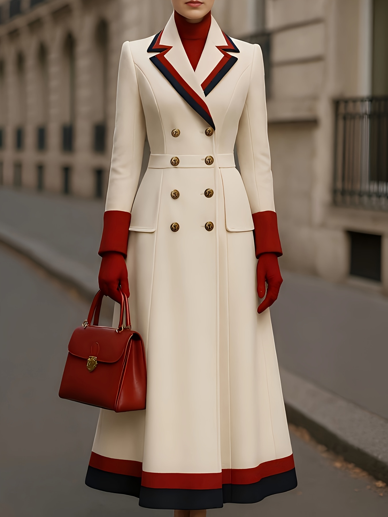 New High-End Fashion Versatile Stylish Goddess and Mature Tweed Coat with Color Blocking, French Style Metal Double-Breasted Long Overcoat, Casual Commuter Women's Outerwear