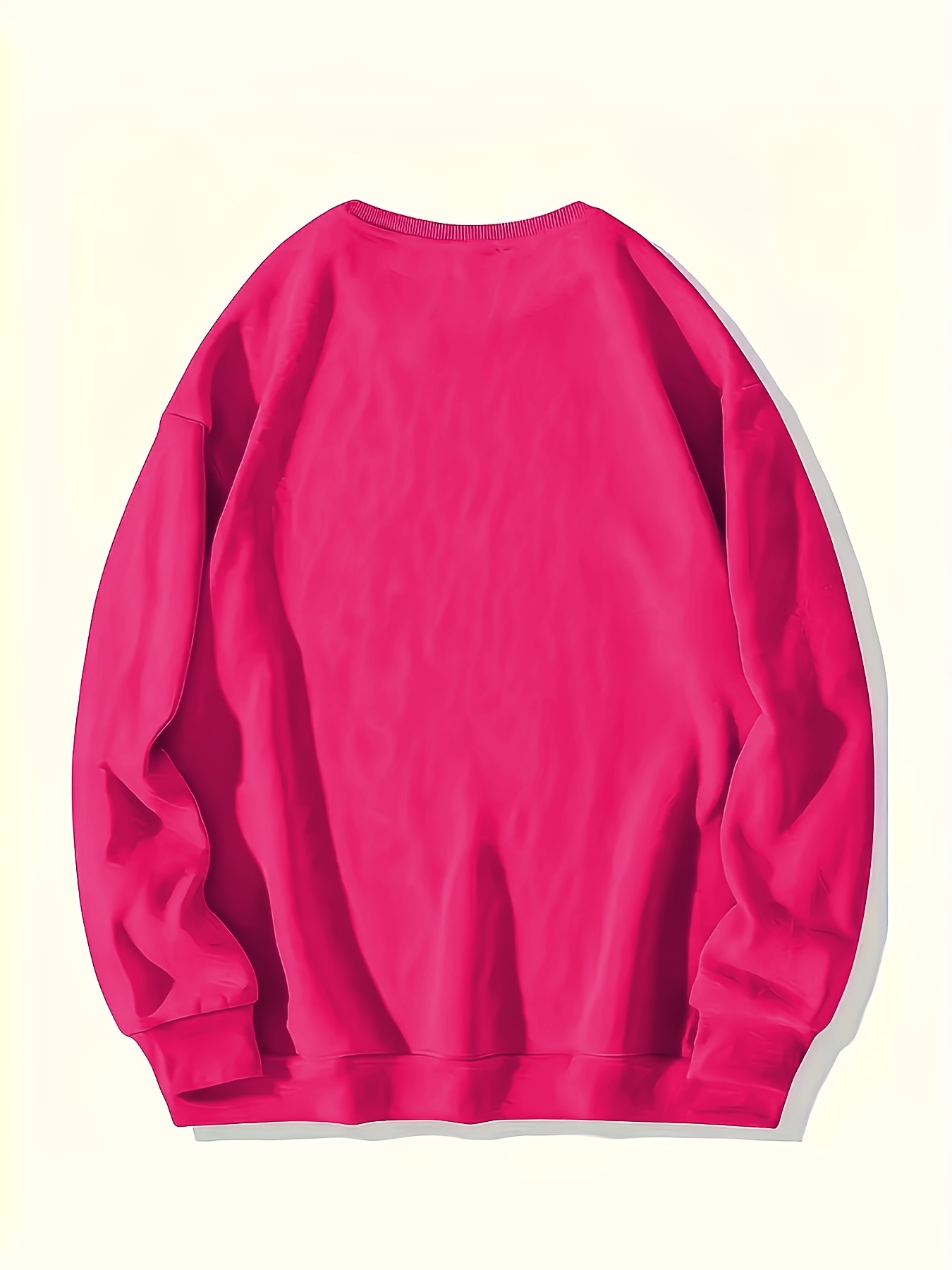 Plus Size Women's Christmas "Tis the Season" Graphic Sweatshirt - Oversized Casual Round Neck Pullover with Candy Cane Stripes, Vibrant Pink Cozy Winter Top, Machine Washable Holiday Apparel, Christmas Sweatshirt, Festive Clothing, Relaxed Fit