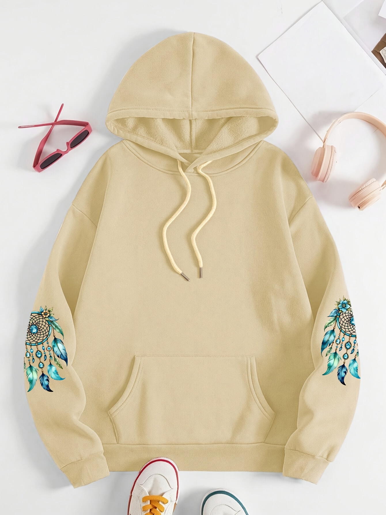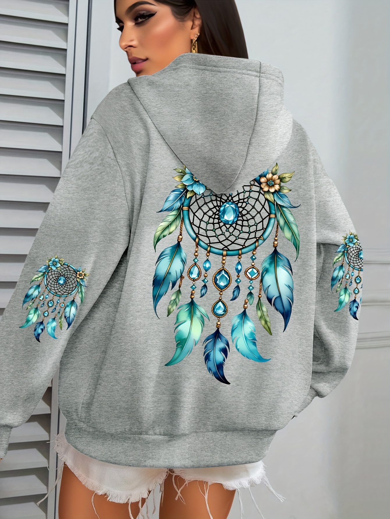 Plus Size - Women'S Elegant Dreamcatcher Hoodie - Cozy Fall/Winter Pullover with Colorful Design, Black Long Sleeve Sweatshirt for Casual or Chic Outfits, Cozy Clothing | Dreamcatcher Design | Durable Fabric